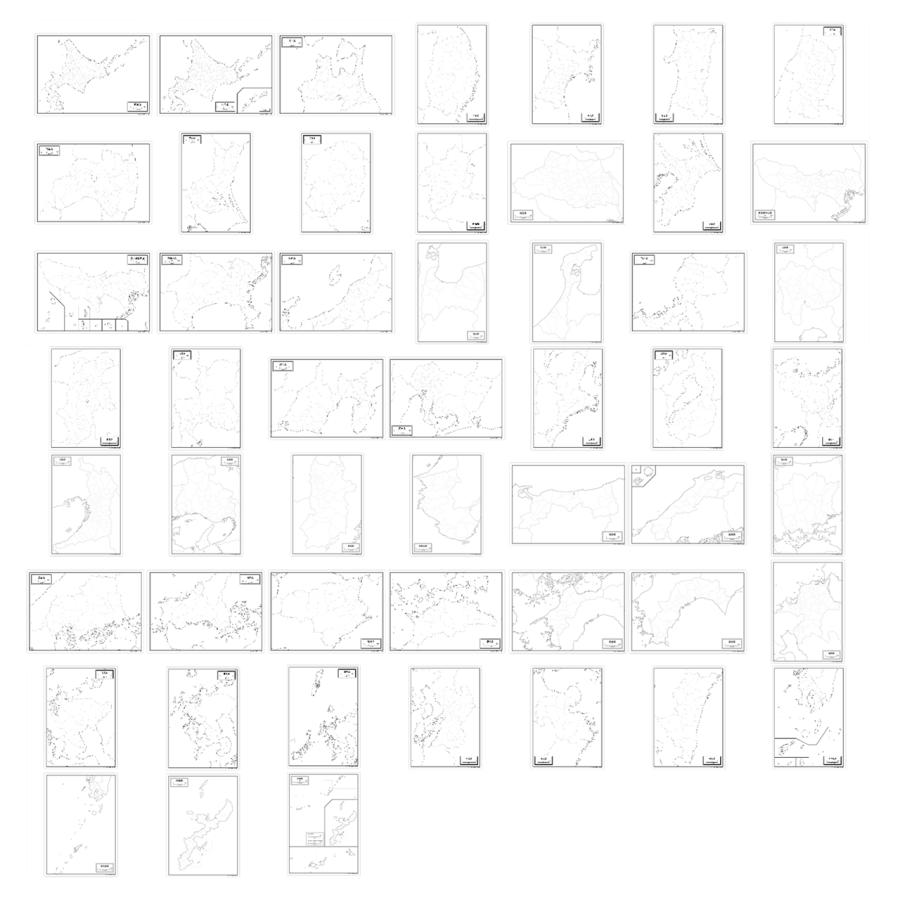 北海道から沖縄までの47の都道府県の白地図(各1種、計47枚)日本地図に海岸線と都道府県境界線のみを記載した白地図です。<サイズ>2種類の大きさからお選びいただけます。