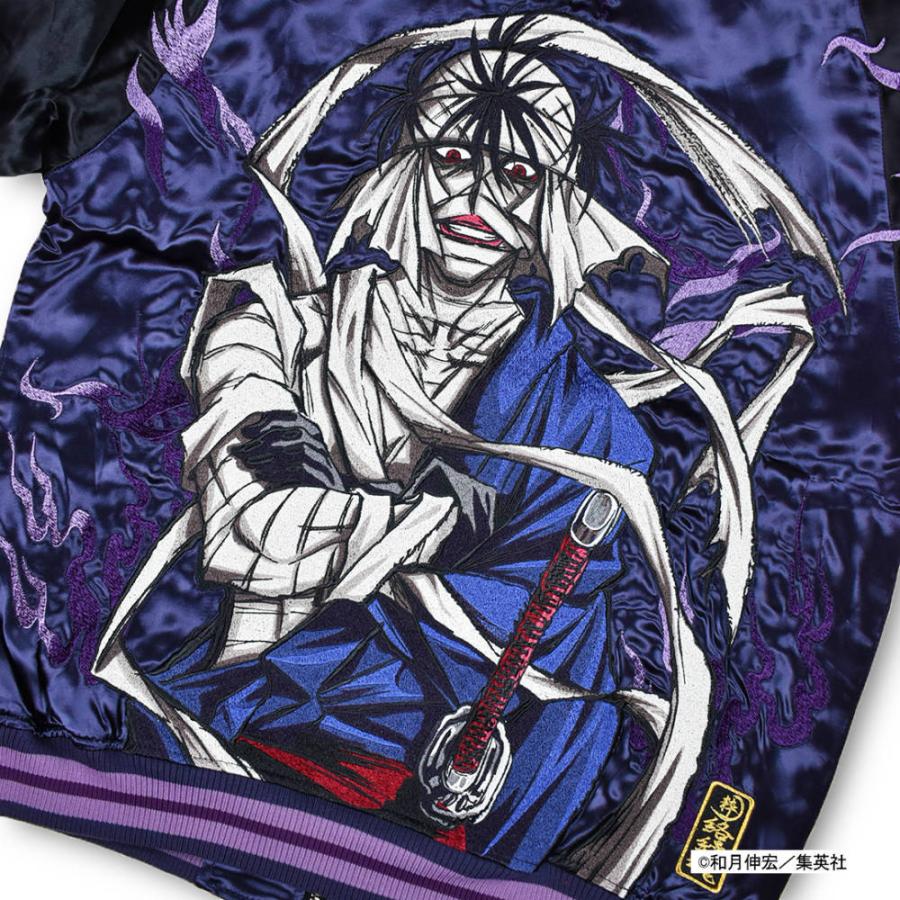 るろうに剣心 × 絡繰魂 粋 志々雄真実 スカジャン ジャンプ 漫画 アニメ 映画 無限刃 和柄 ブラック パープル 黒 紫 M L XL XXL 214061