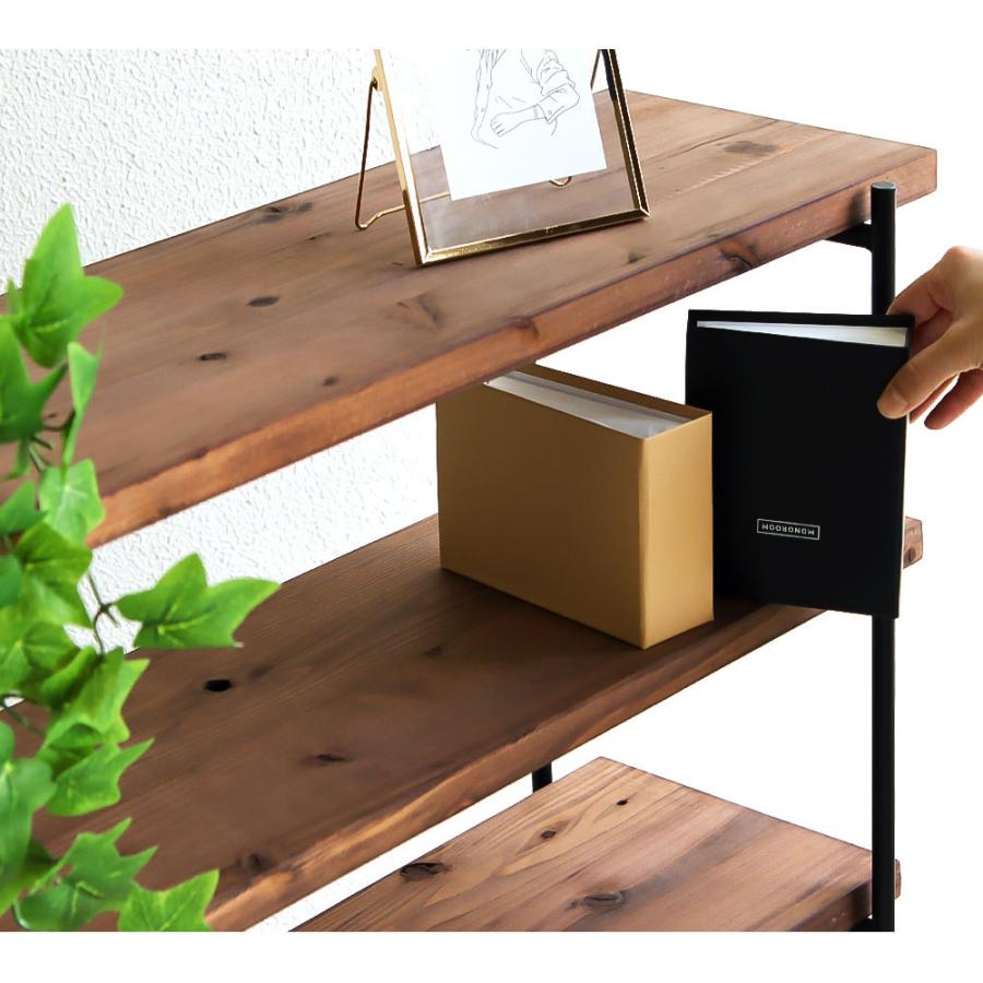 自由な使い方が出来るオープンスタイルで、見せる収納を楽しめるアイアンラック。木目がはっきりとしたヴィンテー