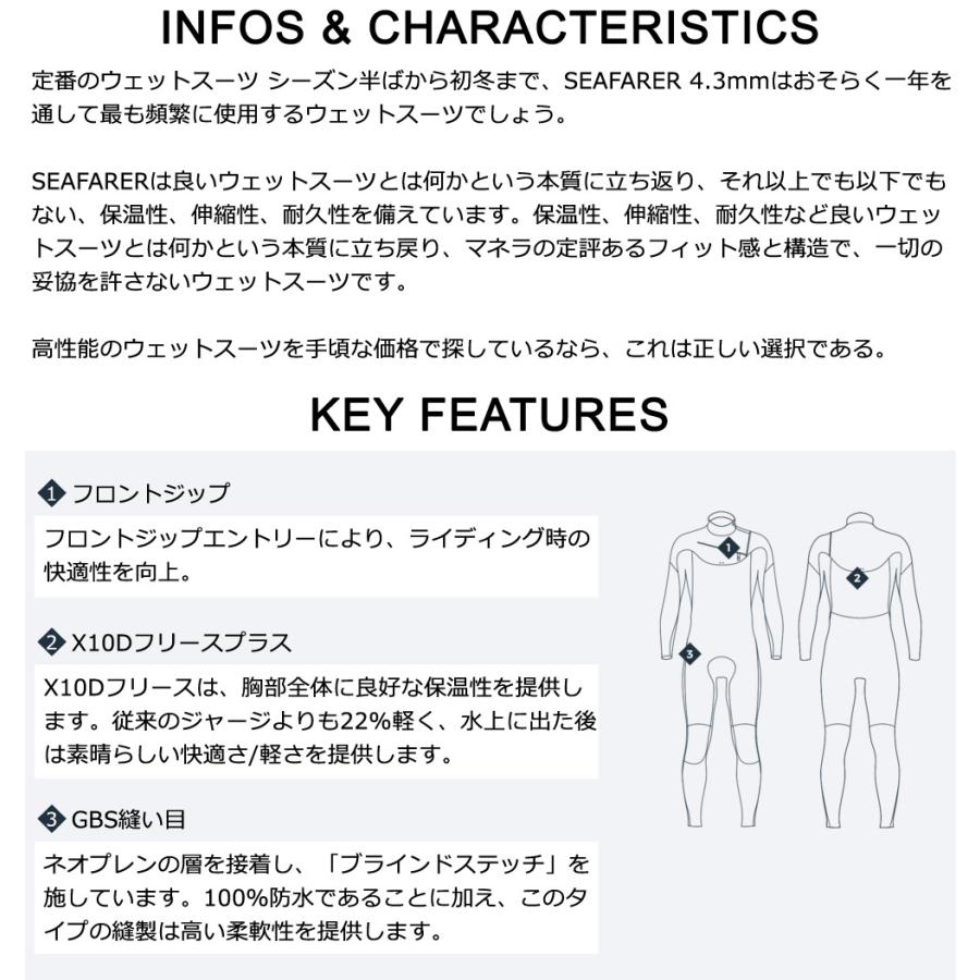 商品情報MANERA SEAFARER / シーファーラー 4×3 ウェットスーツ サーフィン フルスーツ フロントジップ チェストジップ ジャージ |