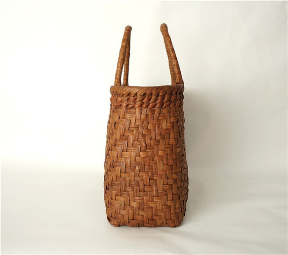 天然山葡萄の蔓のバッグかごです。山に自生する山葡萄のつるを使用し熟練した職人さんが手作りで編み上げています。天然素材の丈夫で美しい一生ものです。 一度山葡萄のかごを使って見ませんか。使えば使うほど色合いが綺麗になります。 持ちやすいサイズです。普段使いはもちろん、おでかけに通年使える素敵なバックです。 未使用です☆大特価で販売してます。 縦 約 22 cm 横 約34cm 幅 約 12 cm 目隠し用内布付き 重さ 約 500 g A4サイズファイル収納可能 山葡萄 山葡萄バッグ |