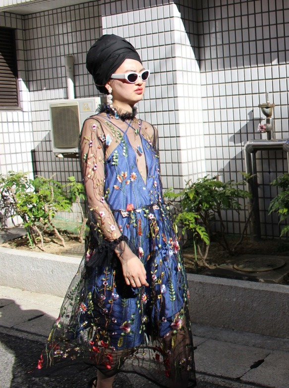 黒チュールに花柄刺繍が施されたワンピースです。 インナーは付いていません。 【色】黒チュール+花刺繍 【素材】 ポリエステル 100% 【サイズ】M size 身丈130cm 身巾86cm モデル165cm 【購入の際の注意点】 ご購入頂く前に必ずご確認下さい。 ●出来る限り、現物を再現する様調整しておりますが、お客様のパソコン・モニター・ブラウザ・メーカー・バージョンによりまして現物とは若干異なる場合がございます。ご心配の場合は、お気軽にお問い合わせ下さい。 【ご購入後のお客様ご都合のご返品に関しまして】 ●ご購入後のお客様ご都合のご返品に関しましては、固くお断りしております。ご理解頂けますと幸いです。 (イメージ違い(素材・質感・カラー)・サイズ違い・お気に召さない・プレゼントで不要になった・予算オーバーしてしまった・ 着用したい日に間に合わなかった)一切お受け出来ませんのでご了承下さい。 ●【購入の際の注意点】に該当致します商品、ご返品・ご返金・ご交換はお受け出来かねます。ご了承ください。 ご不明な点がございます場合は、お手数ではございますがご質問にてご連絡頂けますと幸いです。宜しくお願いいたします。