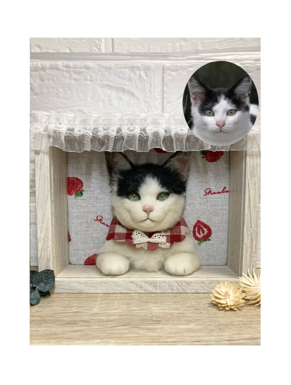 ご覧いただきましてありがとうございます*.゚ 少し幼さの残ったお顔が可愛い子猫ちゃんを作りました。 nyan boxはboxに入った半立体の 羊毛フェルト猫ちゃんです。 展示では反射を避けるためガラスを除いていますが、 正面にガラスが来るためお手入れが簡単にできます。 "愛猫ちゃんと一生一緒!"をコンセプトに お作りしています。 *.゚⋆⸜⸝⋆*.゚*.゚⋆⸜⸝⋆*.゚*.゚⋆⸜⸝⋆*.゚*.゚⋆⸜⸝⋆*.゚*.゚⋆⸜⸝⋆*.゚* .゚*.゚⋆⸜⸝⋆*.゚*.゚⋆⸜⸝ こちらは展示作品です。 ご注文の際は、必ず「nyanbox ご注文方法と詳細について」をお読みいただいた上で、 ご注文用のページよりお願い申し上げます*´ㅅ`)♡⃛ ※ご注文用のページは、下記タイトルにて出品しております。出品がない際は、その月の受付は終了しております。毎月2日にご注文用ページを出品致しますので、どうぞよろしくお願い申し上げます。 作品タイトル 【ご注文用】nyanbox 羊毛フェルト 愛猫 オーダーメイド 必ずこちらのページよりオプション等をご選択の上、 ご購入ください。 他にも展示作品をご覧いただけますと幸いです*´ㅅ`)♡⃛ どうぞよろしくお願い申し上げます。 羊毛フェルト 猫 リアル ぬいぐるみ オーダー オーダーメイド スタンダードboxは60サイズ、全身boxは80サイズでお送り致します。 ※設定の都合上、発送料金はどちらも80サイズの料金となります。 大変恐れ入りますが、どうぞよろしくお願い致します。