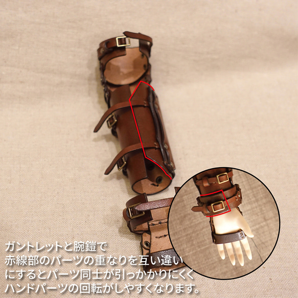 ※こちらは受注生産品となっております、ご注文頂いてから作成させていただきますので発送までおおよそ14日前後頂くことになりますがご容赦ください 良質の牛ヌメ、タンニンなめし栃木レザーを使用 汚し加工入り 完全ハンドメイド・手染め、手縫いで仕上げたファンタジーやスチームパンクテイストのバンブレース(腕鎧)とガントレットのセットです。 内容物 バンブレース(腕鎧)1点 ガントレット1点 右腕、左腕どちらかのみとなります 購入オプションより左右をお選びください 素材等 素材等 国産栃木レザー使用、ハンドメイド商品 カラー:焦げ茶 金具:アンティックゴールド 対象ドール:DD、DDdyドール ・長さ約130mm太さ約30mm ※1つ1つ手作業で制作しており、染め、汚し加工の風合いが写真と異なる場合があります ※1mmの革を染料にて染めている関係上、裏面まで染料が染み出している事がございますが表面の発色のクオリティを維持するために起こる事象で汚れではなく仕様となっております。 ※天然皮革製品は素材の特性上、色のムラ・キズなどがある場合があります。こういった素材の特性上のムラ・キズは不良品扱いとなりません。天然皮革製品の味といえる部分ですので、予めご了承の上、ご注文ください。また、素材の特性上のムラ・キズによる返品はお客様都合となります。 【検索用】牛革 本革 栃木レザー ヌメ革 メイドインジャパン 日本製 手作り ハンドメイド オリジナルデザイン ドルフィードリーム DD ドール用小物 ドール用服 ドール用アクセサリー ガントレット 革鎧 レザーアーマー レディース ファンタジー スチームパンク おしゃれ かわいい かっこいい 高級 |