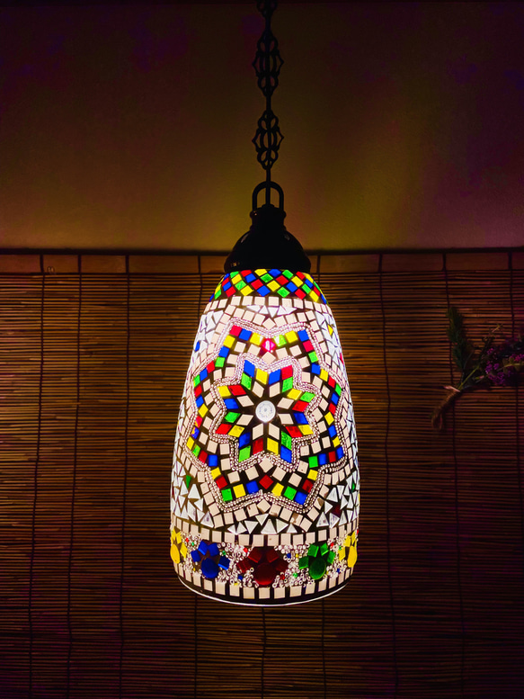 つりがねのような形の大きなホヤに、ワンコ・ニャンコ好きには堪らない“肉球”をデザイン。カラフルな色合いも可愛い作品です。お気に入りの場所に吊るしてみませんか?チェーンの長さは調整致します。ご相談ください。また、お色違い等のオーダーも承ります。お気軽にお問い合わせください。 ※LED電球付き ※発送はゆうパック着払いを利用します。元払いご希望の場合は、ご購入お手続き前にご一報ください。 ※ ガラスホヤ部分高さ:23cm、直径14cm 「プロフィールをご確認いただいた上でご注文お願いいたします。」