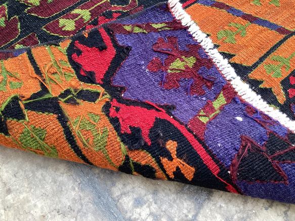 TURKISH HAND MADE KILIM RUG1940年頃、トルコ・アフヨンのオールドキリム小さいながらも大胆な色