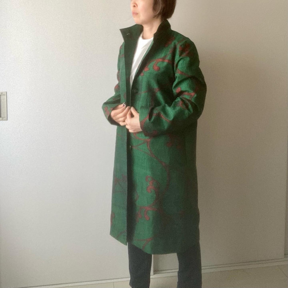 お手持ちの着物をお持ち込みいただいての受注制作になります。 着物をリメイクしたコートです。 少しハリや厚みがある着物、つむぎ、羽織、道行などがこのデザインに向いています。通常裏地をつけています。 ご注文の際にご自分のサイズをご申告いただきますが、最大身幅周り120cmくらいまで可能です。 前中心を、ボタン、ホック、くるみスナップなどにアレンジ可能です。 着物を全部ほどき、水洗いしてから使用します。 (ご自分でほどき、水洗い後郵送していただいた場合3000円値引きいたします。) 先に水洗いしておきますと適度に縮みますので、ご着用後もご自宅で手洗いできて便利です。 |