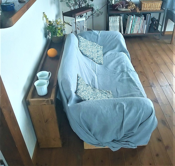 ソファの後ろに、ちょっと物が置ける棚があると便利なので、作ってみました ソファ後ろ以外でも、奥行が浅いので、ベッドのヘッドボードの裏や、ちょっとした隙間収納棚としても使えます(もちろん普通のオープン棚にもなります) ※受注生産品につき納期が2週間前後かかります 下が収納スペースになっていますので、本や小物以外にも、掃除機等の長い物も収納できます キャスター付きなので、後ろに壁のある場所でも、横に引っ張りだして取り出せますが、横にそのスペースがない時は、上の天板(こぼれ止め付き)が蓋のように取れますので、上からも出し入れできます ※キャスターなしもできます ※現在は側面の板がメルクシパイン集成材に変わっています サイズは画像1?9枚目がw120cm、高さ52cm、奥行18cm(天版の内寸14cm)で、10枚目がW150cmです 収納用の棚板が一枚付いています(こぼれ止め付き) 下の収納スペースは奥行14cm(こぼれ止め外は16cm)高さ(深さ)42cmで、 棚受けは、下に雑誌が立つ32cmと上10cmのパターンと、単行本が2段立つ各21cmの高さと、その間の3段付いています(雑誌は横置き) ※お部屋のソファに合わせてサイズオーダーもできますので、ご希望のサイズを指定してもらえればお見積りさせていただきます ちなみにw90cmは20000円(送料はヤマト40サイズで、300円程安くなります) w150cmは26000円です(送料は佐川240サイズで、関東地方なら5800円です) ご希望の場合は、専用ページをアップします
